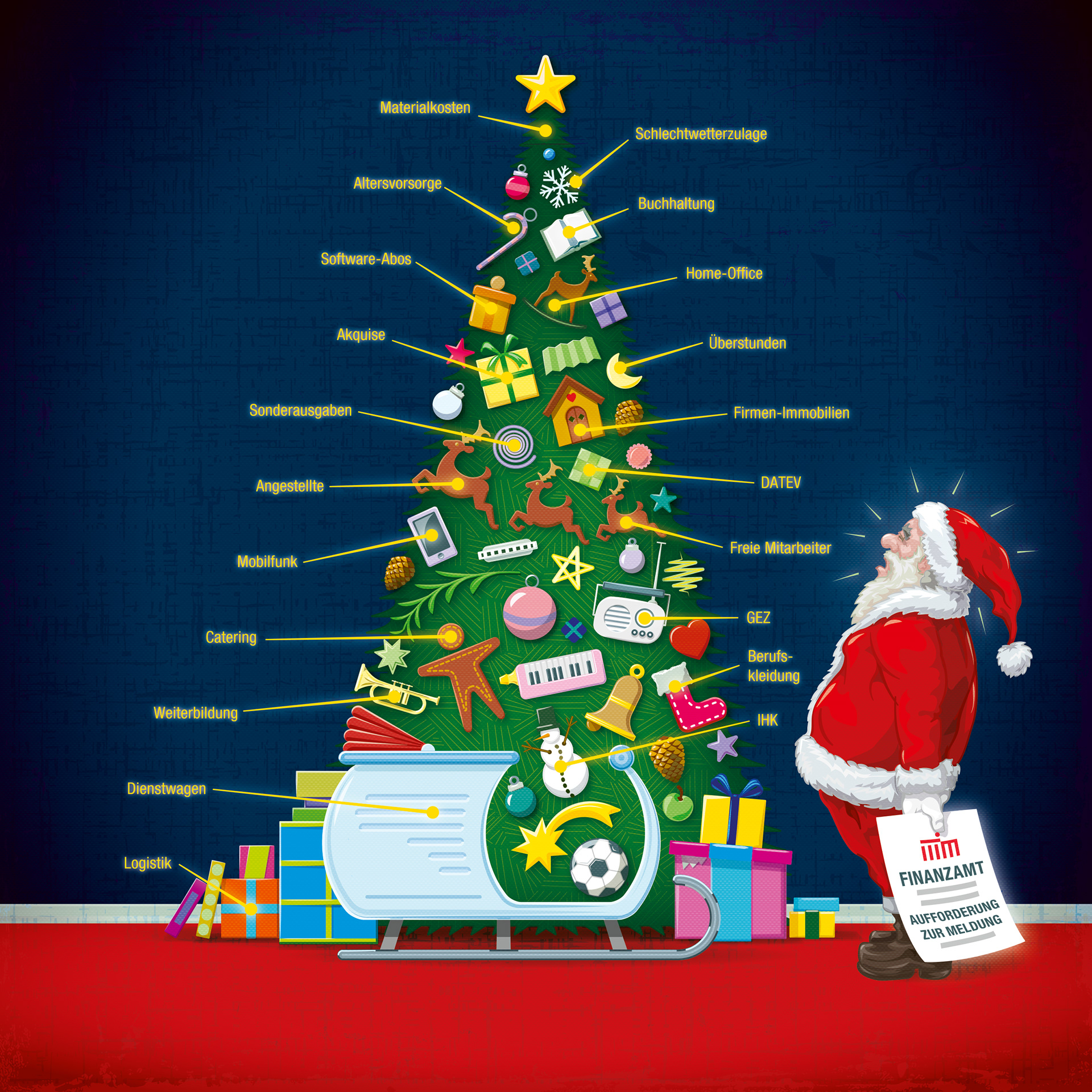 Weihnachtliches Wimmelbild für ein Steuerbüro